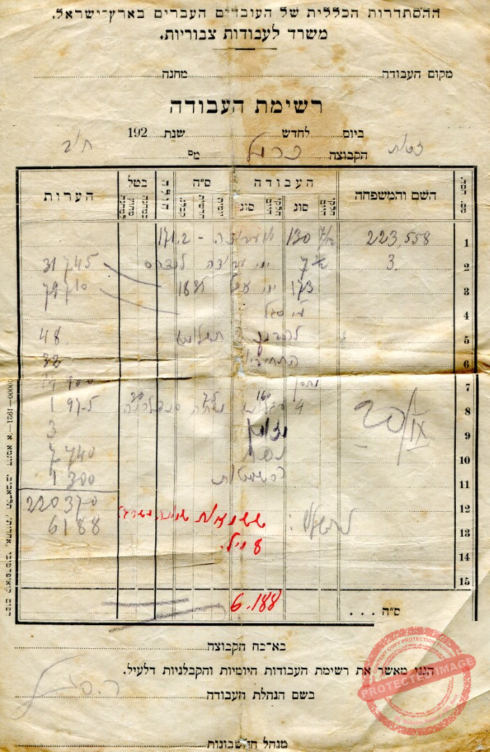 רשימת עבודה "עד אוגוסט 1921". "קבוצת כרמל" אשר…