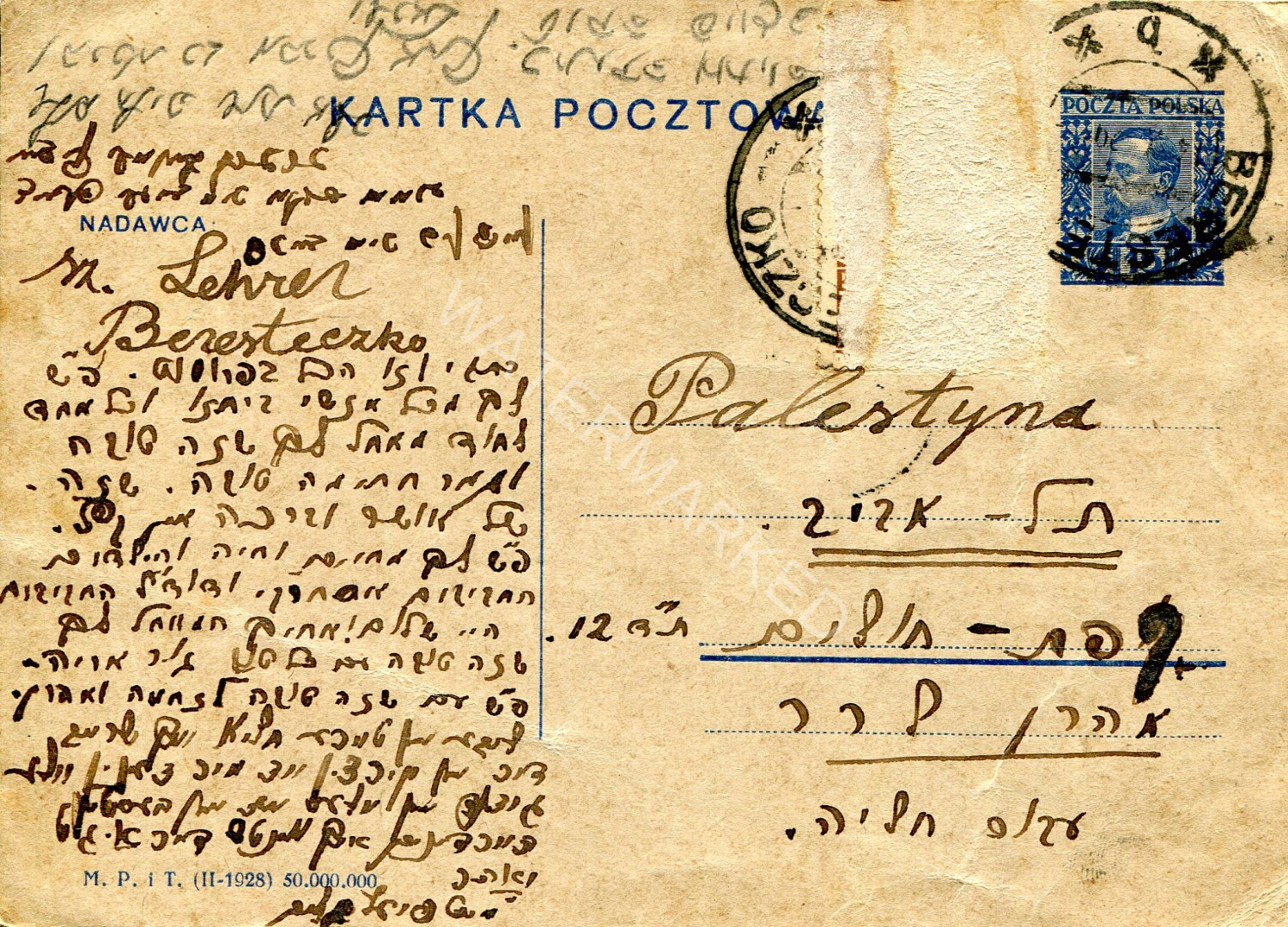 13 באוקטובר 1929, גור אריה כותב לאחותו, ומוסיף…