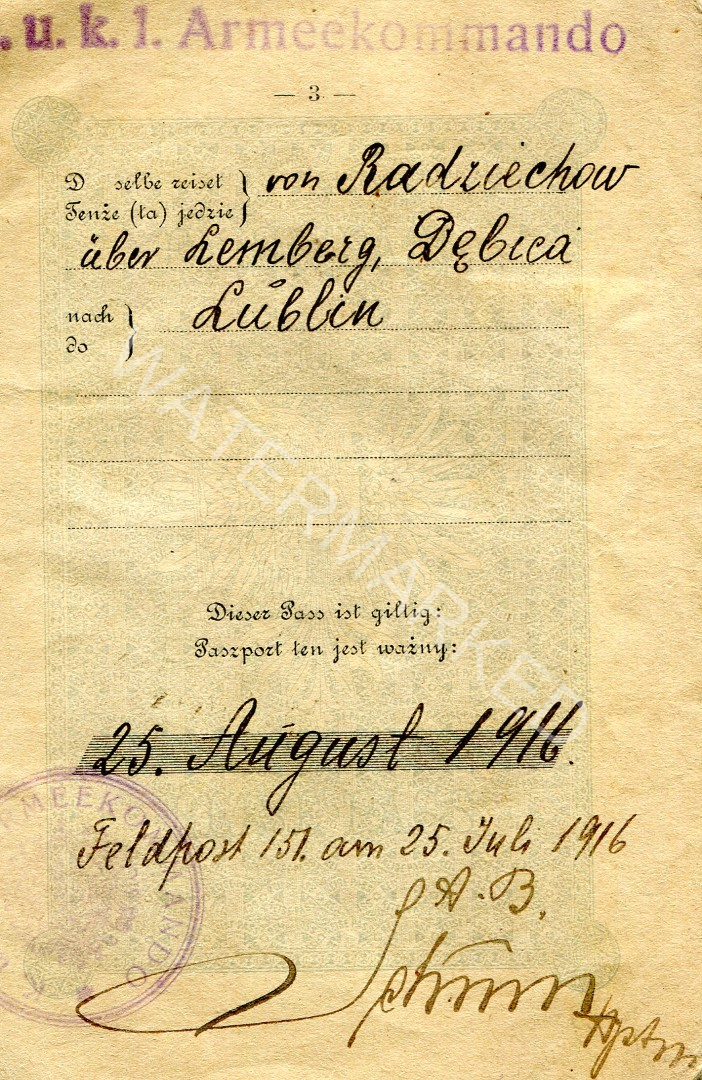 תעודת מסע מראדזיכוב דרך למברג (היא לבוב) ללובלין.…