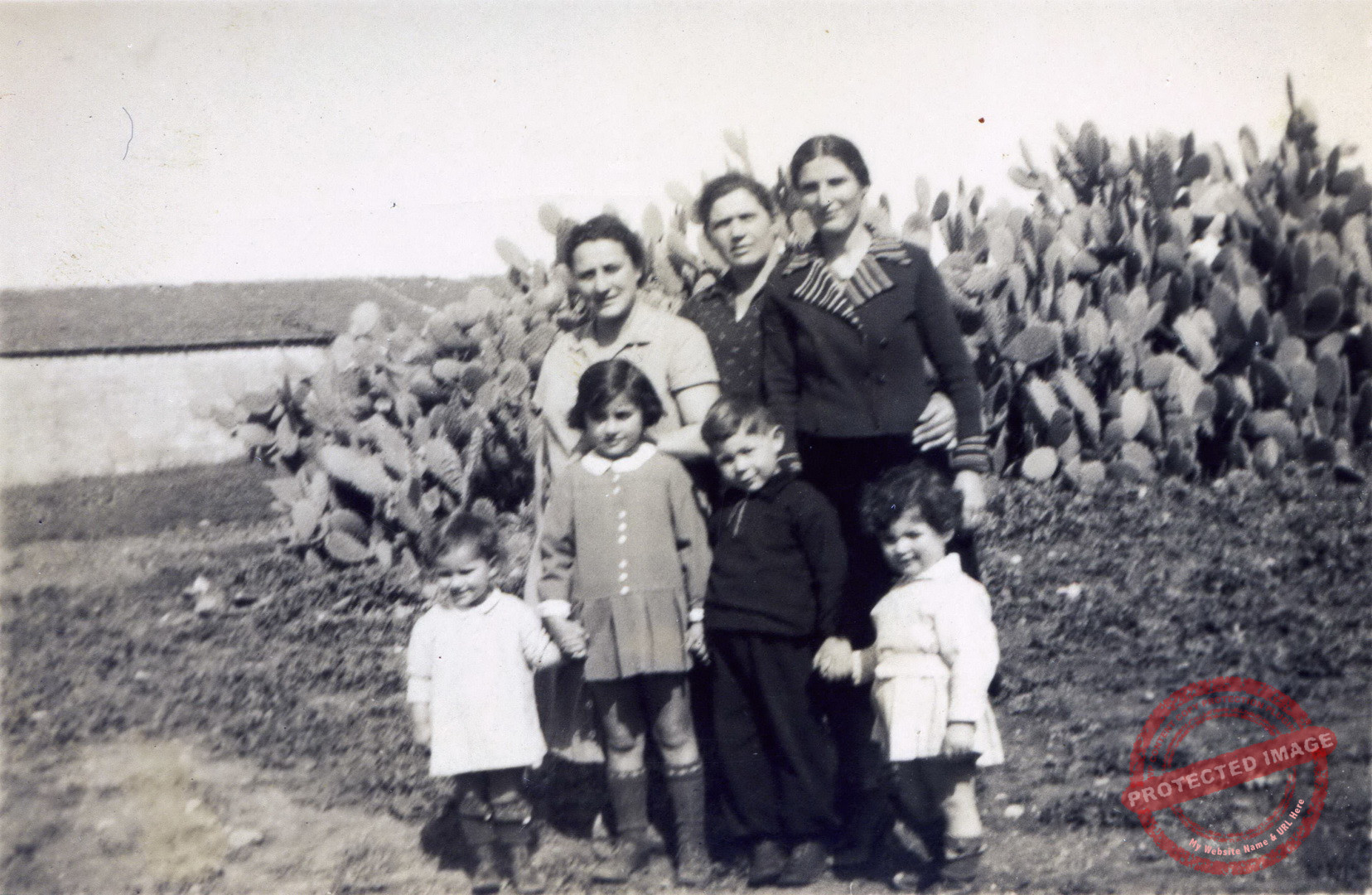 החברות הקרובות ! מימין: חנה זוכובסקי לבית צמחוביץ', ממשפחות המייסדים, ובתה חיה. חנה וזליג זוכובסקי (שינו את שמם לאדירי) עזבו את ג'דה ב 1936 והתיישבו בכפר ויתקין. הדסה קסוינר ובנה הצעיר יעקב במרכז, מירצ'ה ברזניצקי ושתי בנותיה עדה ורחלה משמאל.