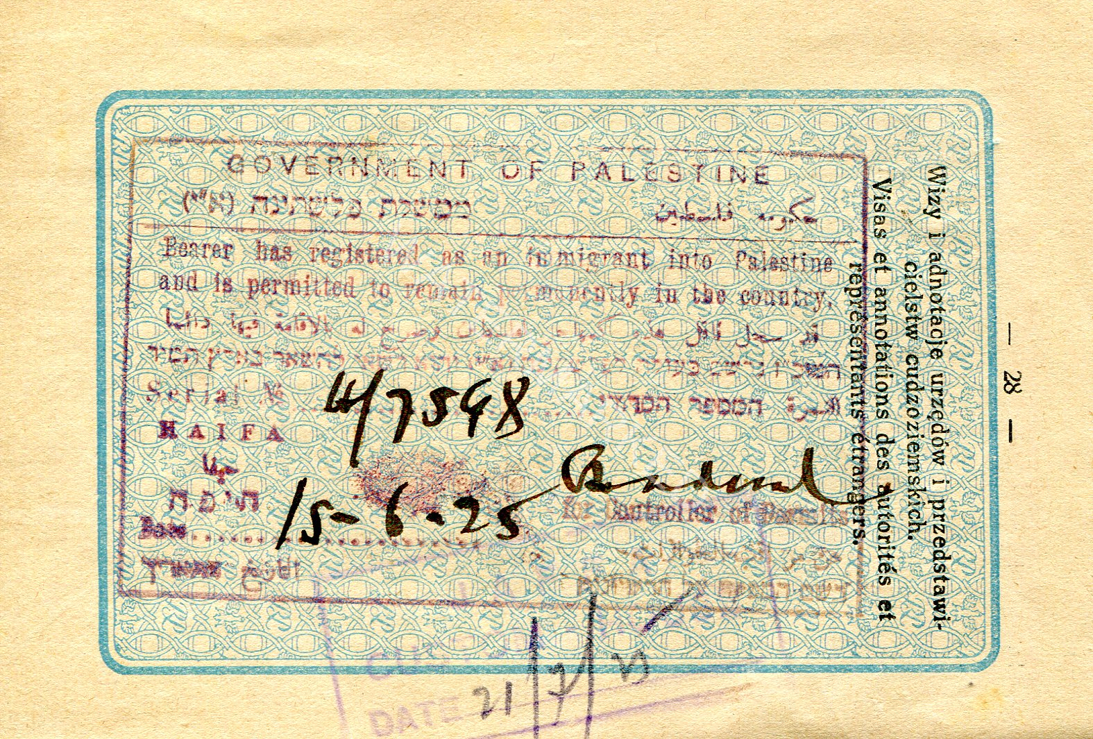 ויזה בריטית לכניסה לפלסטינה. הונפקה בקונסוליה הבריטית בוורשה…