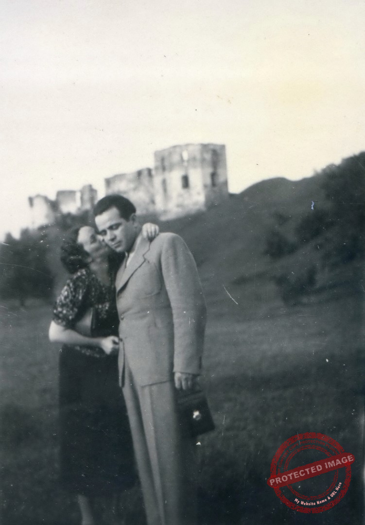 גליציה המזרחית נדבורנה ופניוב משפחת רוזנקרנץ 28 מקס ואשתו על רקע שרידי הארמון / המבצר של הנסיכים מבית קורופטווא המתנשא מעל לעיר. בתקופת מלכות פולין היתה נדבורנה כולה בבעלות נסיכי קורופטווא. → גליציה המזרחית נדבורנה ופניוב משפחת רוזנקרנץ 27גליציה המזרחית נדבורנה ופניוב משפחת רוזנקרנץ 29 ←