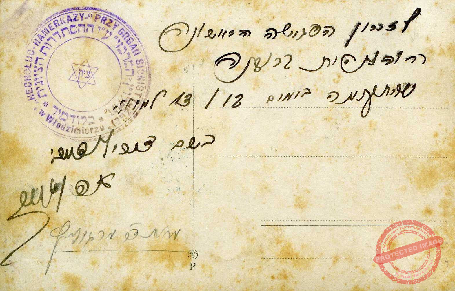 חותם "החלוץ המרכזי" על גב התמונה: החלוץ המרכזי…