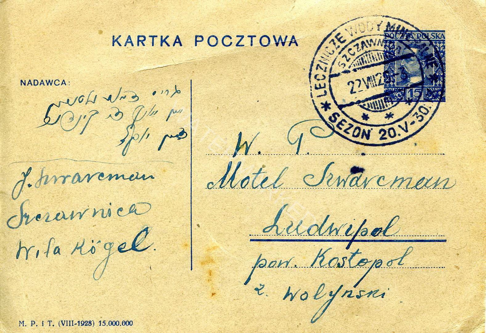 22.8.1928 הגלויה נשלחה ע"י יוסף שורצמן הנמצא בעיירת…