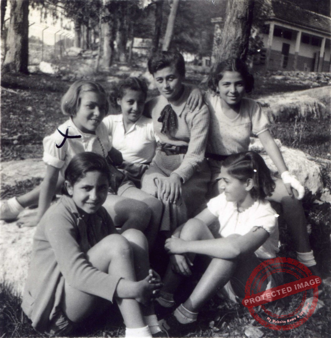 מוסדות חינוך בארץ ישראל א כפר ילדים מאיר שפיה 16 טיול של שבת בשולי הכפר, 1935. האחות מרים אטינגר (לבושה שמלה אלגנטית) והבנות למעלה מימין: כוכבה לוי, דבורה שריאן, חיה שחורי. למטה מימין: פנינה, לבנה רוסו. → מוסדות חינוך בארץ ישראל א כפר ילדים מאיר שפיה 15מוסדות חינוך בארץ ישראל א כפר ילדים מאיר שפיה 17 ←