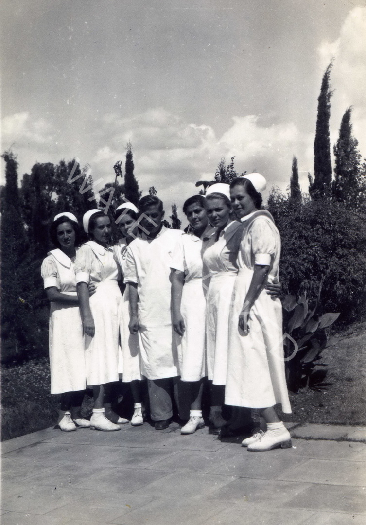 השתלמות מחלקת ילדים נערכה בבית החולים העמק בעפולה מכיוון שבבילינסון לא היתה אז מח' ילדים. מימין: חוה לדרר, חיה שחורי, יונה שלגי (אחות מקומית), ד"ר דויטש סגן מנהל מח' ילדים, גנסיה מקובר, הניה, ישראלה כנעני.