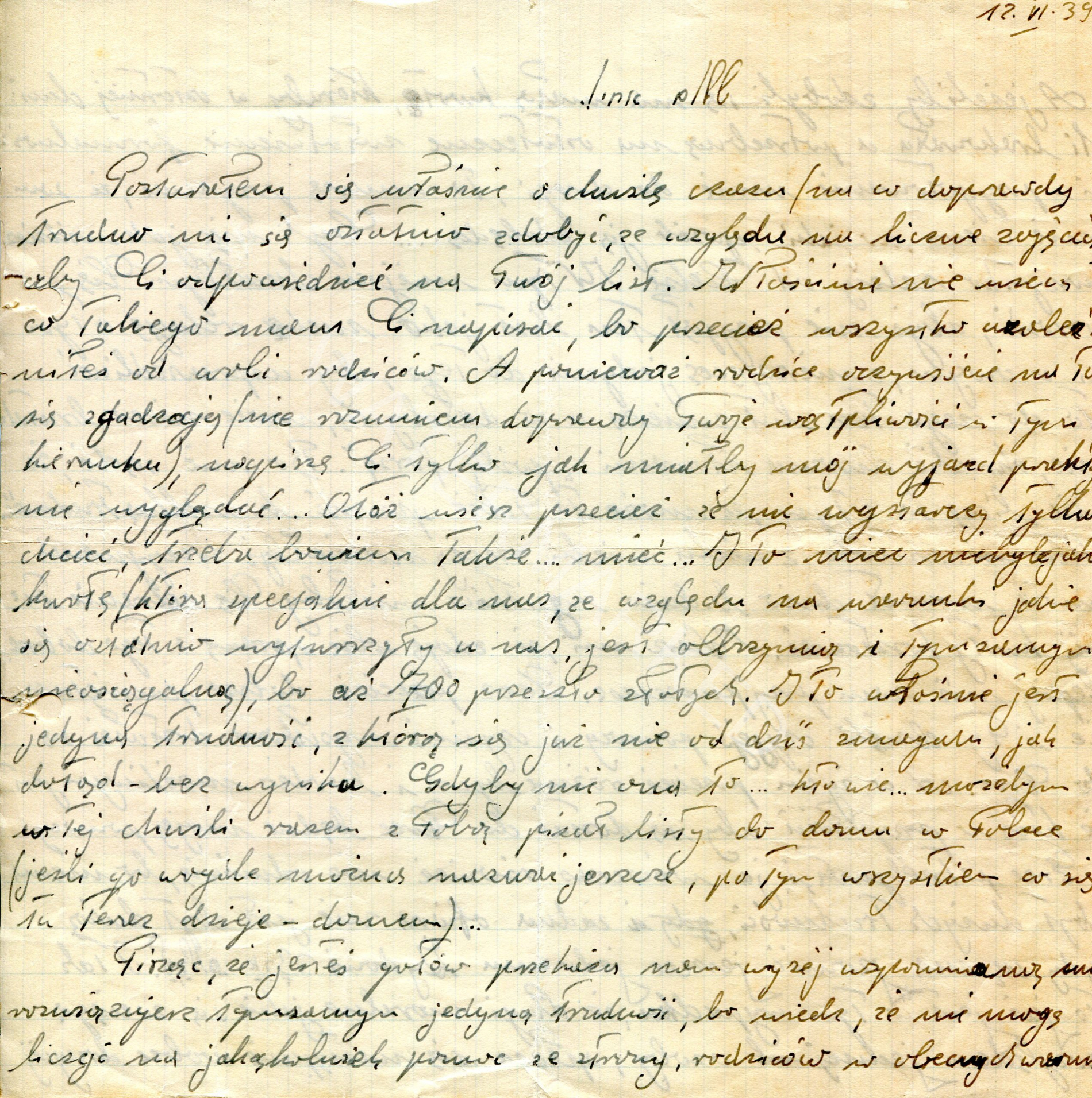 תרגום מפולנית 12 ביוני 1939, (ובעברית) שלום אחי…