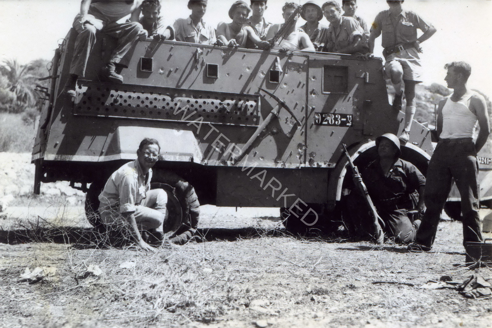 מלחמת השחרור אהרלה הלוי 2 25.7.1948, משוריין מסוג "ווייט" של גדוד 34 תוצאות פריצת הכביש לחיפה וכיבוש הכפרים עין ר'זאל, ג'בע ואיגזים במסגרת מבצע "שוטר". אהרל'ה, עם גופיה מימין, פיקד על פלוגת משוריינים בגד' הסיוע 34 שהוקם באותה עת במסגרת חט' "אלכסנדרוני". → מלחמת השחרור אהרלה הלוי 1מלחמת השחרור אהרלה הלוי 3 ←