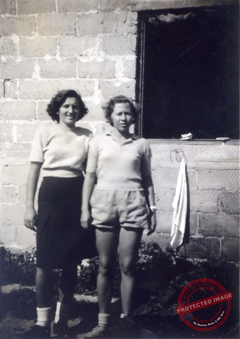 הסיירות יהודית בן תקוה, מימין, ומרים סימון ליד "הבנין הלא-גמור" בגבעת רמב"ם בו התגוררו עם 45 בחורים.