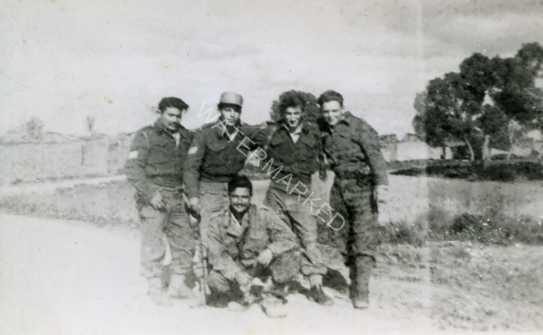 משמאל: חיים וייספיש (שפיר) מקרית מוצקין, חיים פרקש (החיפאי) שכינויו באצ"ל "פנחס", חיים פרקש (התל אביבי) שכינויו באצ"ל "גד", דוד ברין. כורע המ"מ בן ציון הרמתי (הוכמן) מרמת גן. התמונות והמידע באדיבות ח. פרקש בפגישות עימו בינואר 2013 בביתו שבתל אביב.