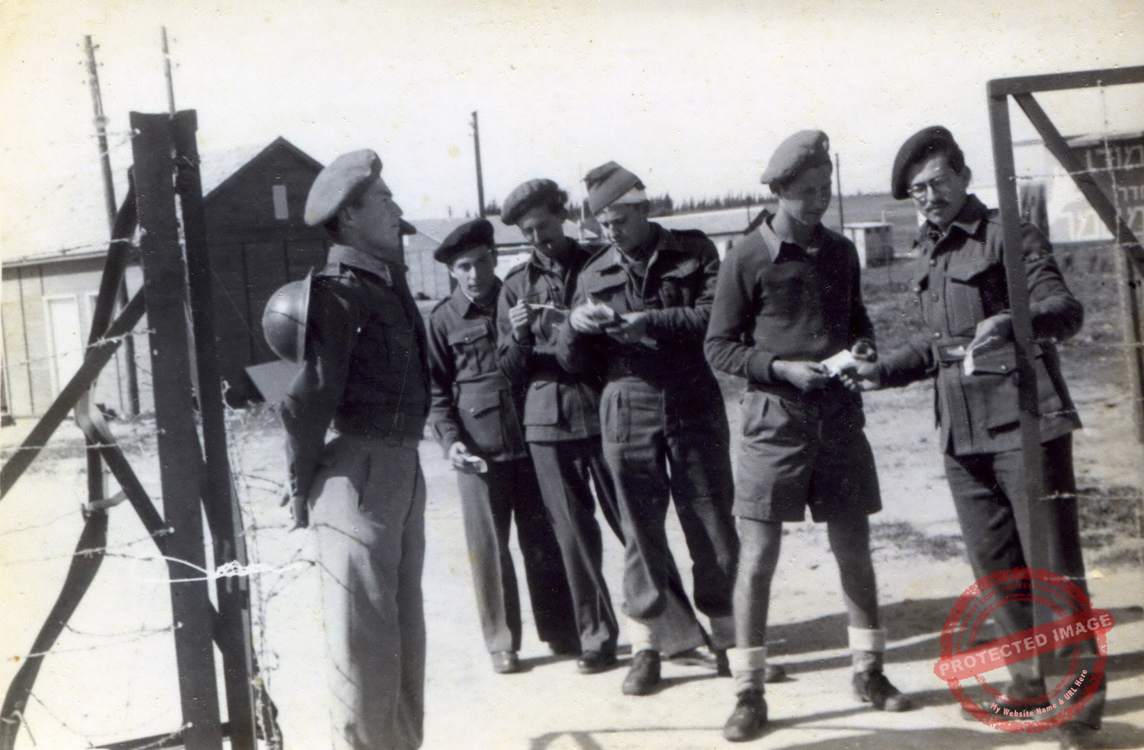 אברהם (אברהמל'ה) שוחט עומד דום מתוח משמאל. מימין בודק את ה"פסים" חיים וינשטיין החבלן עתיר המוניטין ואחריו דודא זיו במכנסים קצרים, יוסק'ה דיאמנט, מיכאל גומפרט וזאב גוטמן ("הצרפתי") בסוף התור.