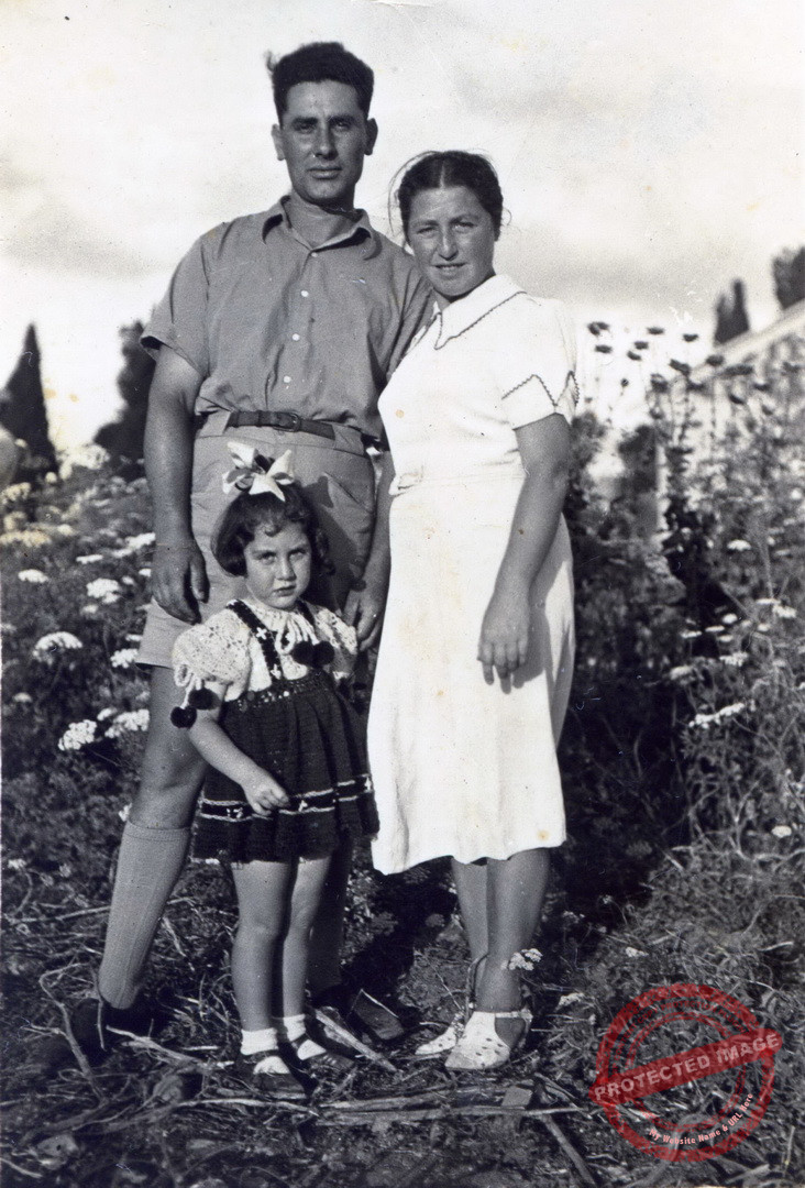 לאה וצבי פינקלשטיין עם בתם הבכורה זהרה, 1938