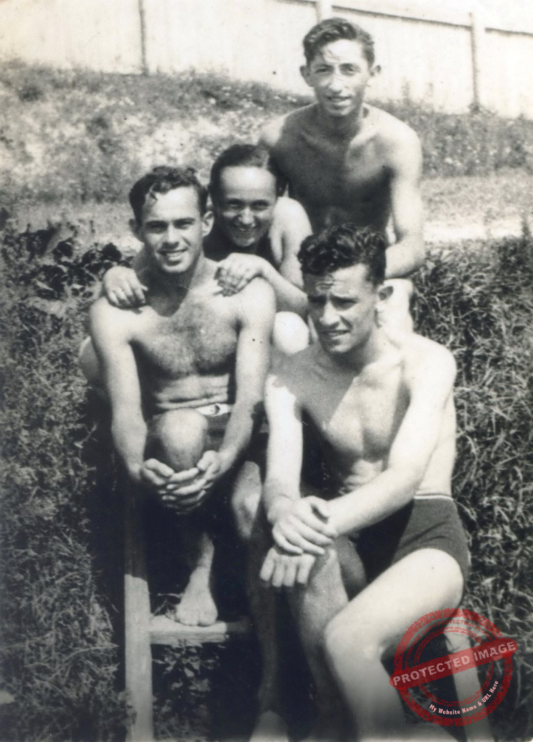 רובנה האחיות לבית אירלין 144 לחוף הים, באותו זמן ובאותו מקום, חנה "חוגגת" בימים האחרונים שלפני העליה ארצה - משה "פערד" מעליה ואליק קרופינסקי מתחתיה. רובנה האחיות לבית אירלין 144 לחוף הים, באותו זמן ובאותו מקום, חנה "חוגגת"… רובנה האחיות לבית אירלין 144א 10 באוגוסט 1939 על גב התמונה. → רובנה האחיות לבית אירלין 143ארובנה האחיות לבית אירלין 144א ←
