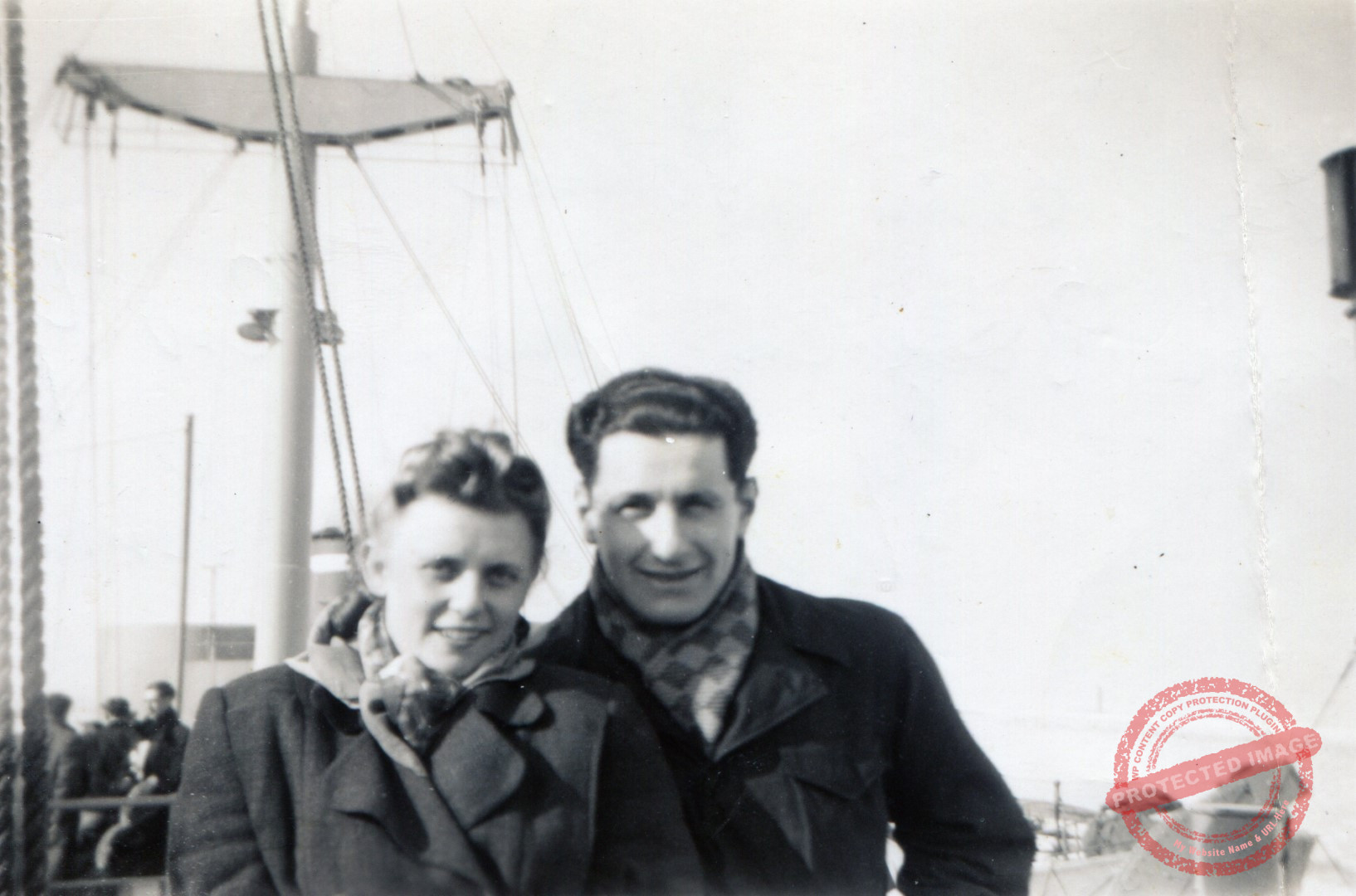 תחנת וינה מש' פרטיג ומלאכי 15 2 באפריל 1947, וילי ואסתר מפליגים לניו יורק. עוד רגע דרמטי בחיי זוג הניצולים הזה בצומת דרכים גורלי של חייהם. הלא הם אך הכירו בווינה לאחר שאיבדו את כל עולמם ובני משפחותיהם בשואה ועתה הם בדרך לבניית עולם ומשפחה חדשים, מבוכה ותקוה נסוכים יחד על פניהם. תחנת וינה מש' פרטיג ומלאכי 15 2 באפריל 1947, וילי ואסתר מפליגים לניו יורק.… תחנת וינה מש' פרטיג ומלאכי 15א וילי פרטיג כותב בגרמנית על גב התמונה: "על… → תחנת וינה מש' פרטיג ומלאכי 14אתחנת וינה מש' פרטיג ומלאכי 15א ←