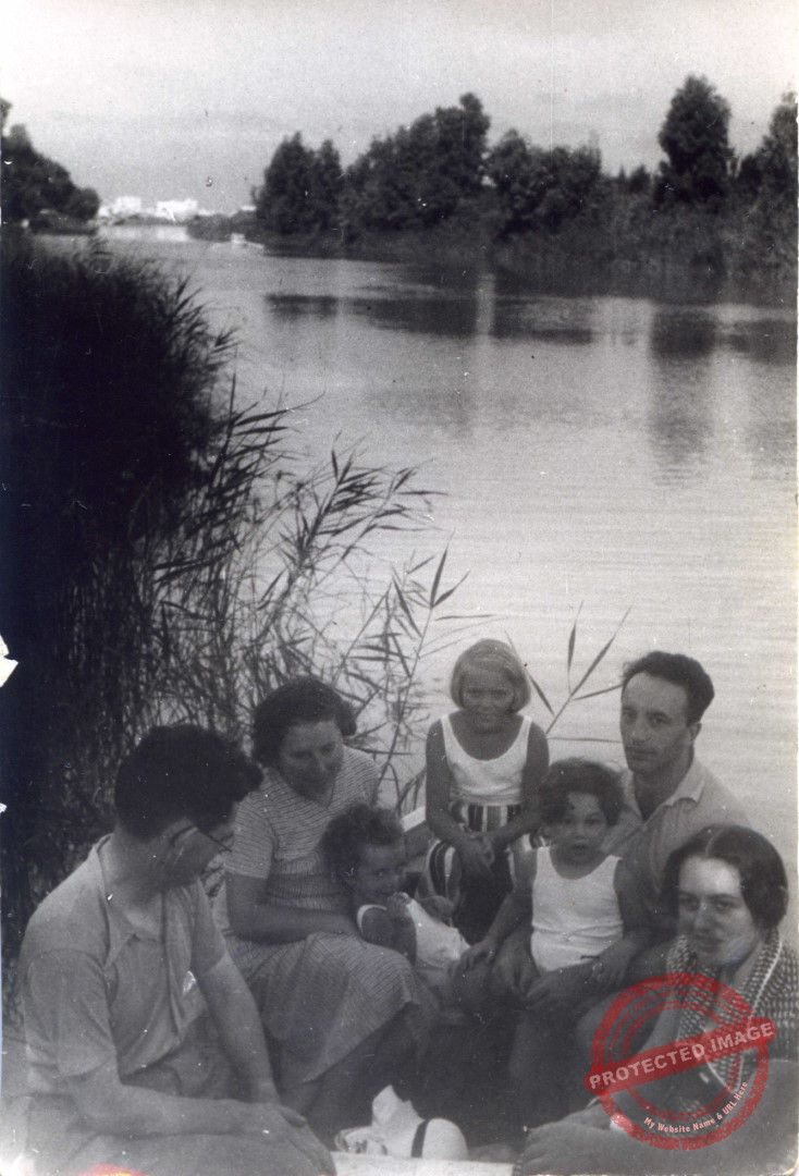 משמאל: דודה מנחם שחורי, צפורה אשתו ובתם נועה. מימין: אורי בלום, אשתו בתיה ובתם נעמה (חברים של מנחם וצפורה). מנחם היה האפטרופוס המחמיר של ילדי אחיו המנוח והיה אחראי, בין היתר, על הפרדתם הכואבת לאחר עלייתם ארצה, אמי לכפר הנוער מאיר שפיה ושלמה לבן שמן.